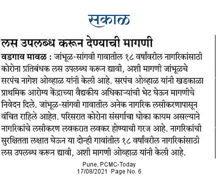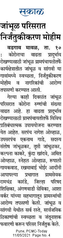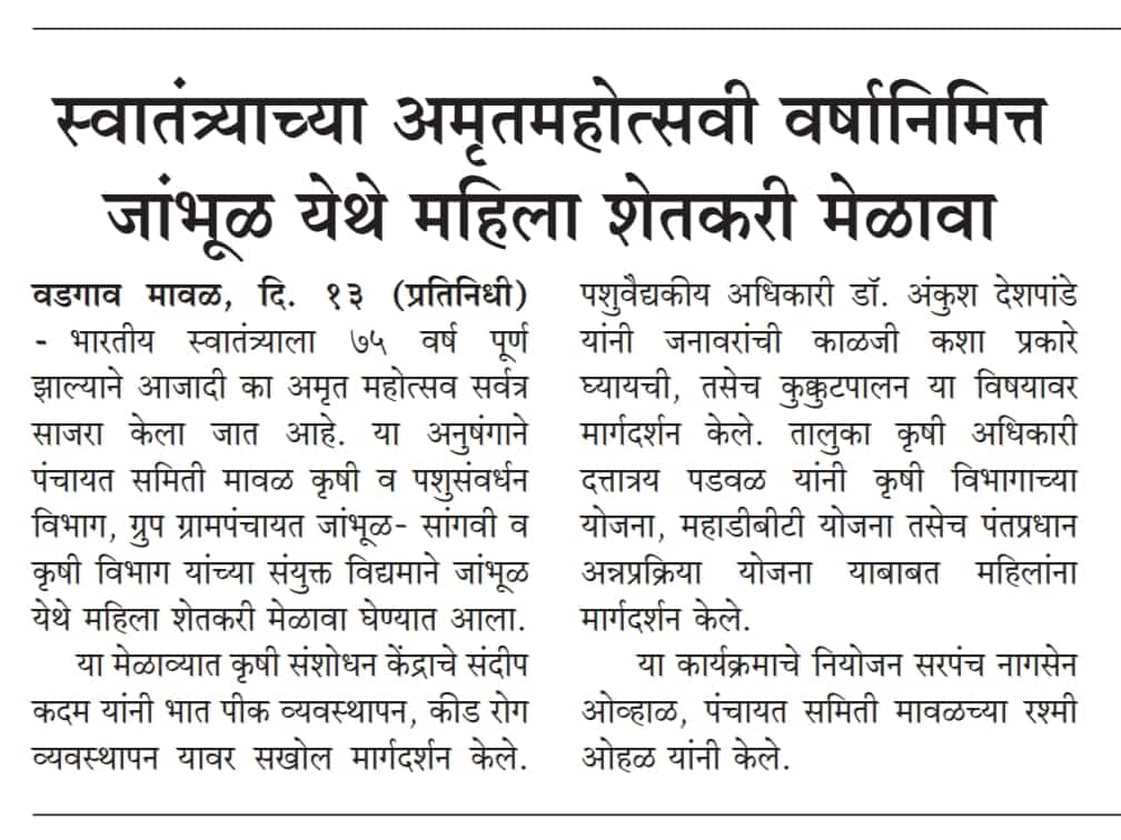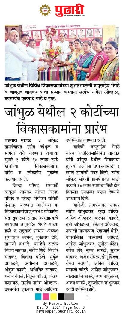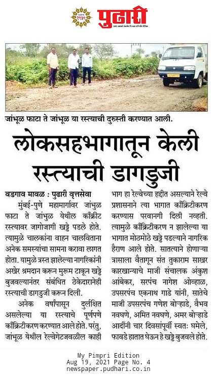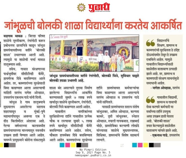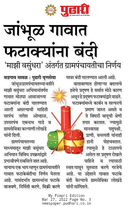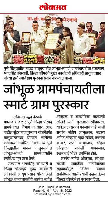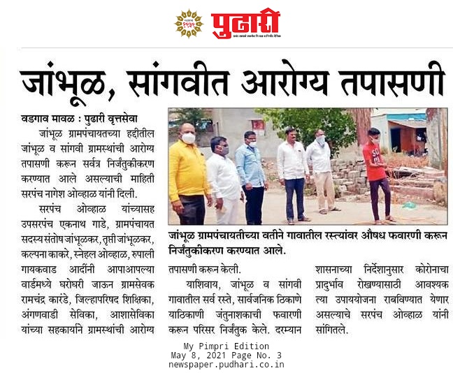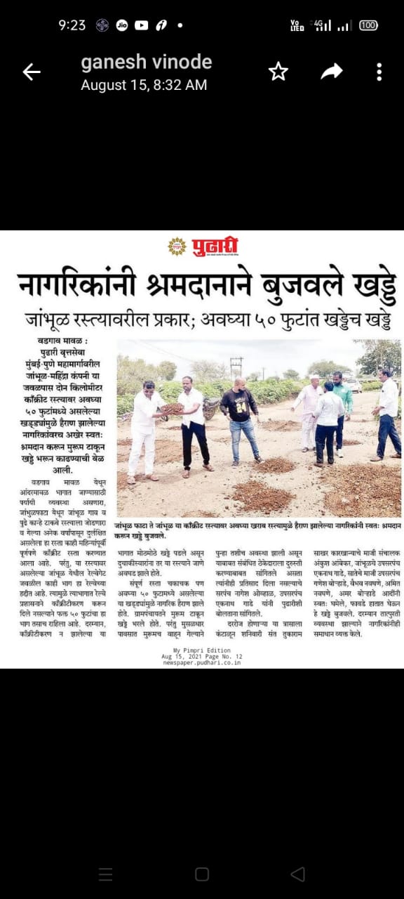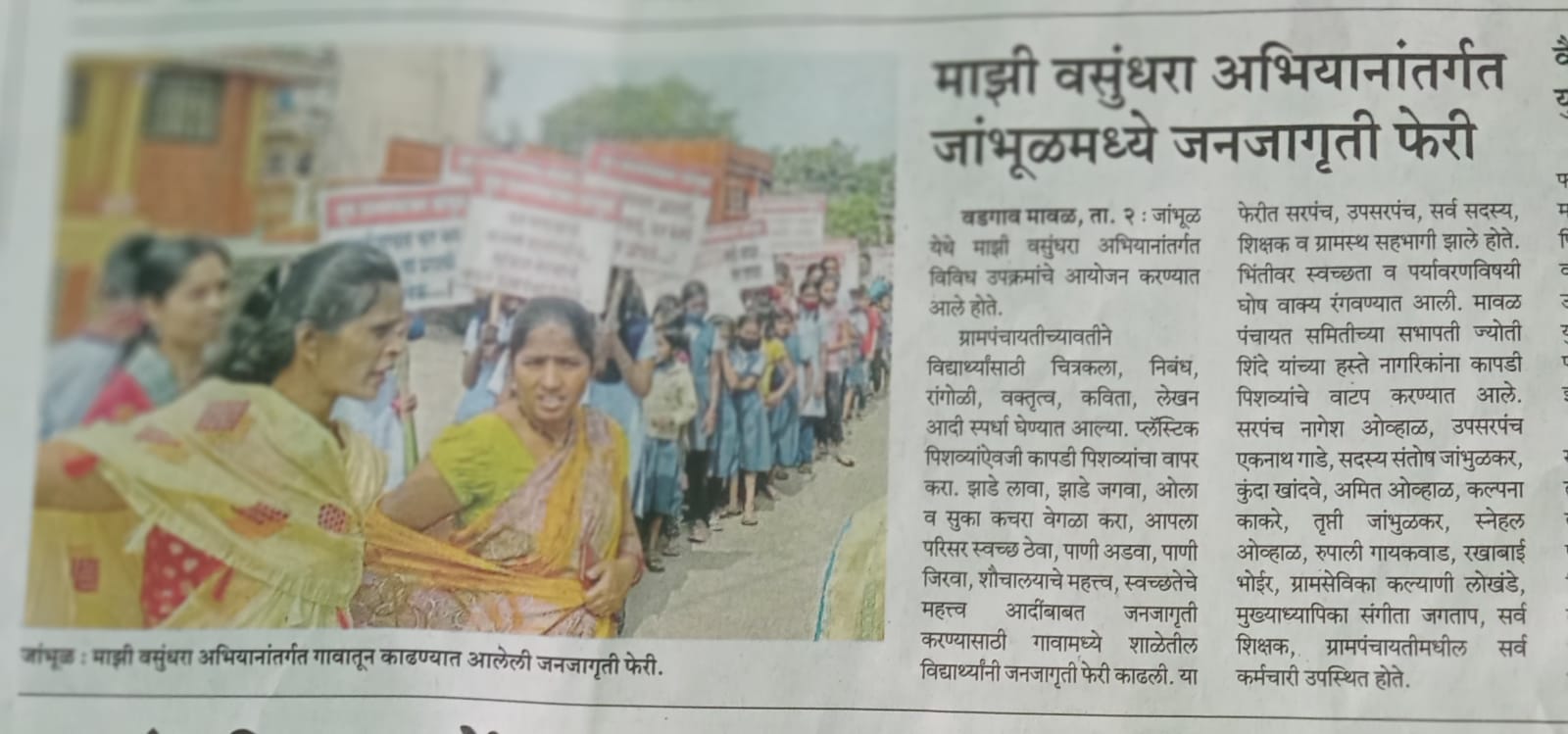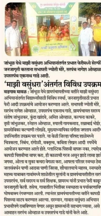 ग्रामपंचायत जांभूळ /सांगावी बातमी म्हणजे उत्तम कामगिरी ची पावती